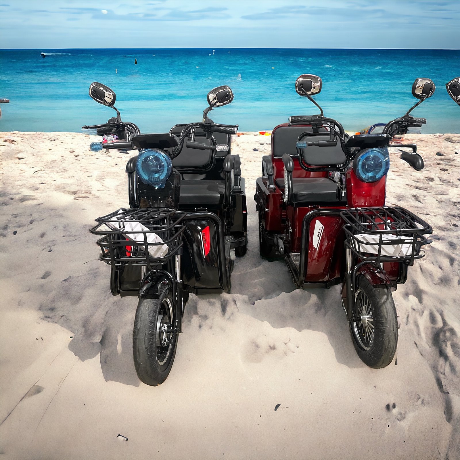 Introducing the perfect blend of compact design and powerful performance. The 1000W electric trike is your ultimate companion for navigating side streets and subdivisions. Reach speeds of up to 25 mph with ease, thanks to the robust Hub Motor, while the Quad Spring Rear Suspension supports up to 550 pounds, ensuring a smooth ride.