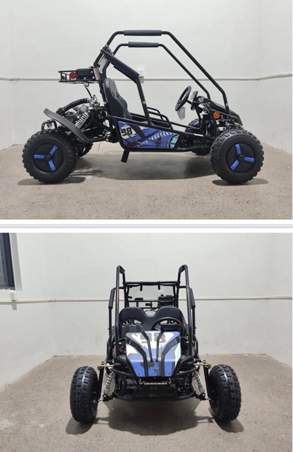 Engineered with hydraulic disc brakes, sturdy 16×8-7 tires, and a reinforced frame, this go-kart provides excellent stability and stopping power on a variety of terrains. The electric start system and CDI ignitionensure easy and reliable operation every time. The Supermach 125cc Go-Kart blends performance, durability, and safety — making it one of the best entry-level family go-karts on the market.